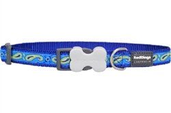 Paisley Blue with Green - Dog Collars, Leashes, & Harnesses (Size: SM Collar)